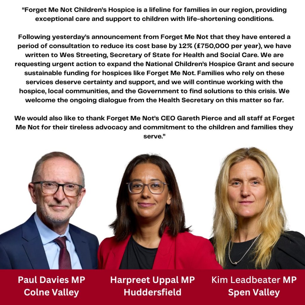 Following yesterday’s announcement that Forget Me Not has entered a period of consultation to reduce its cost base by 12% (£750,000 per year), we have written to Wes Streeting MP, Secretary of State for Health and Social Care. We are requesting urgent action to expand the National Children’s Hospice Grant and secure sustainable funding for hospices like Forget Me Not. Families who rely on these services deserve certainty and support.
