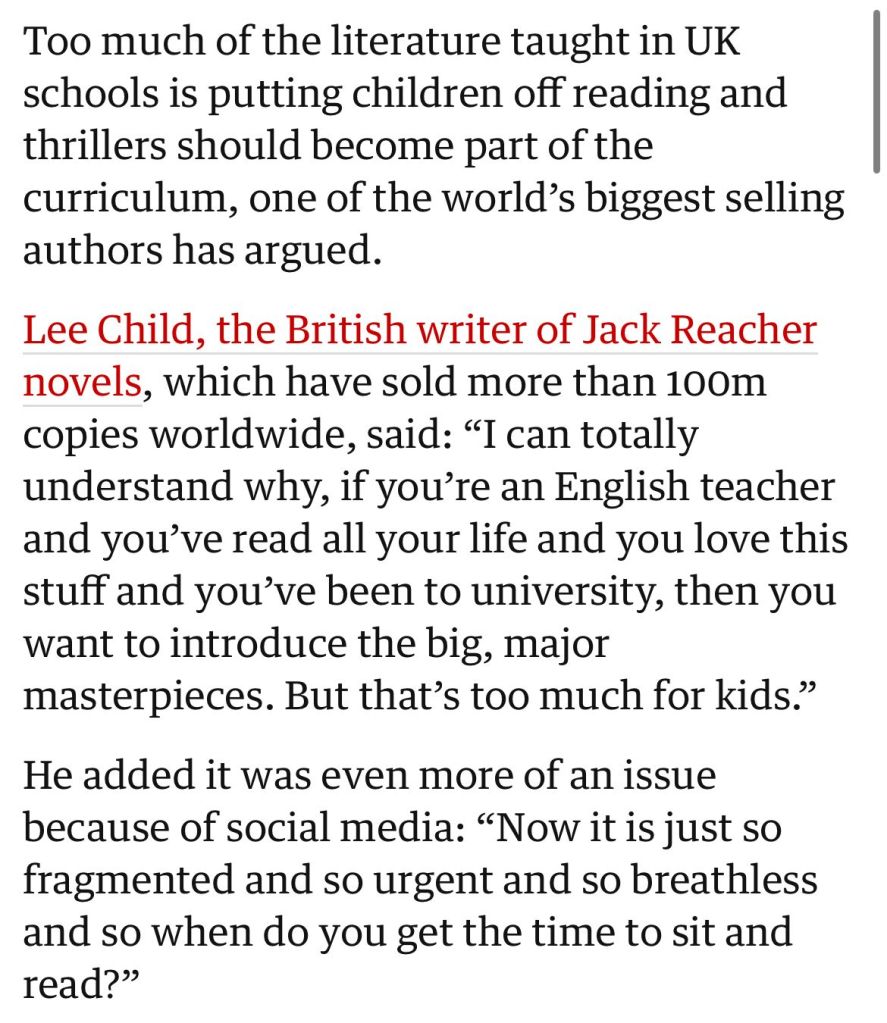 👉https://www.theguardian.com/education/2025/dec/19/lee-child-thrillers-uk-school-curriculum-literacy